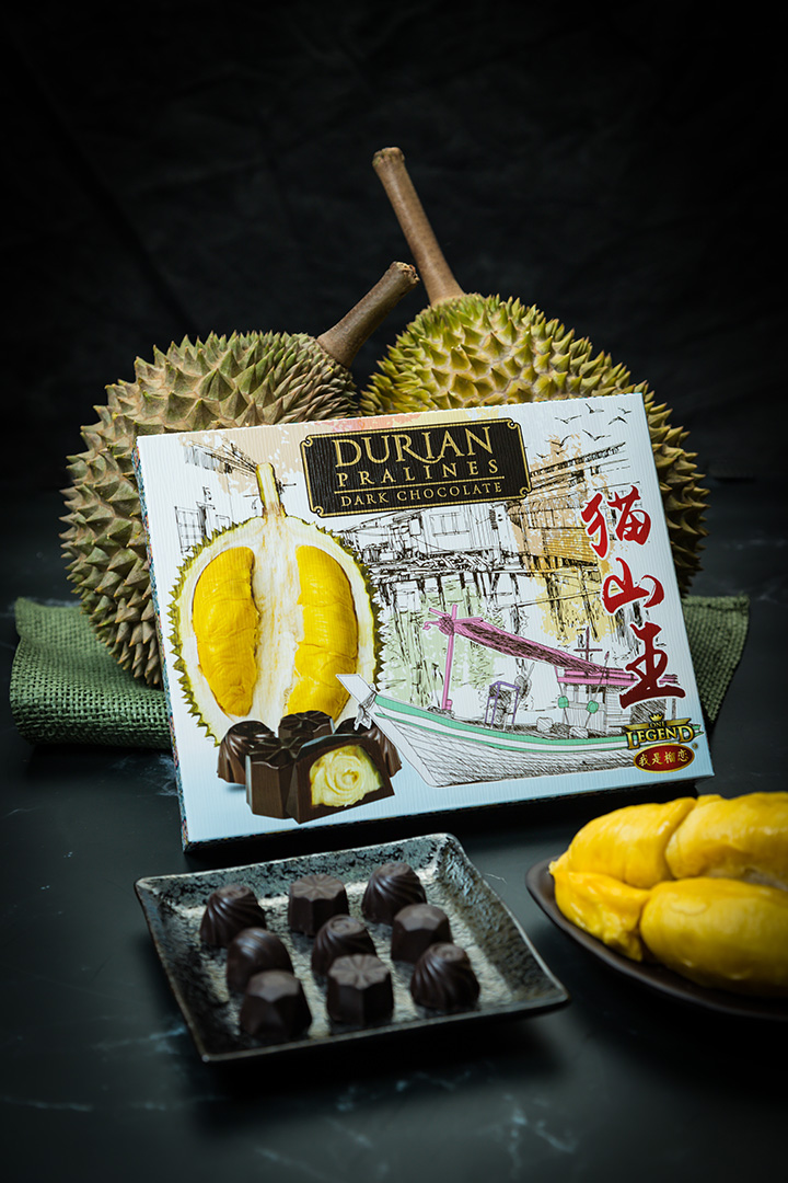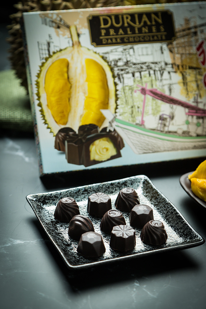 Dark chocolate tastes rich and full-bodied with a bitter taste. The sandwich durian fillings sprout from deep cocoa aromas and quickly invade your taste buds.