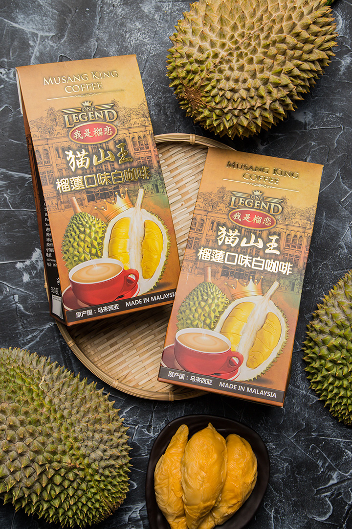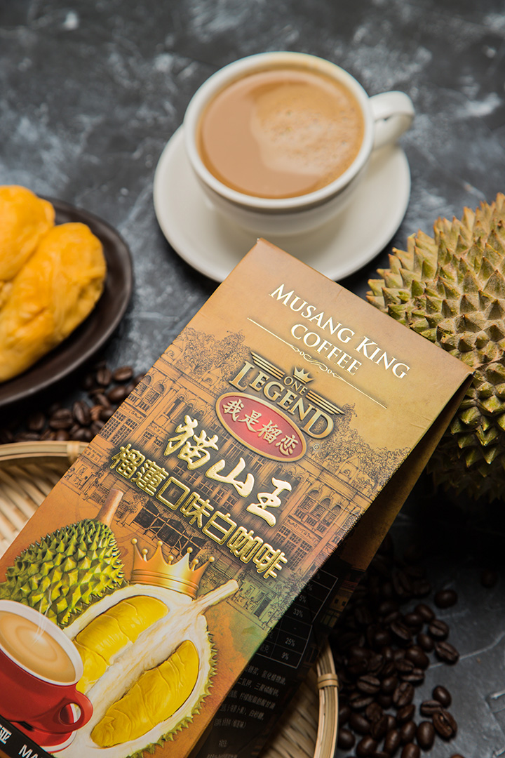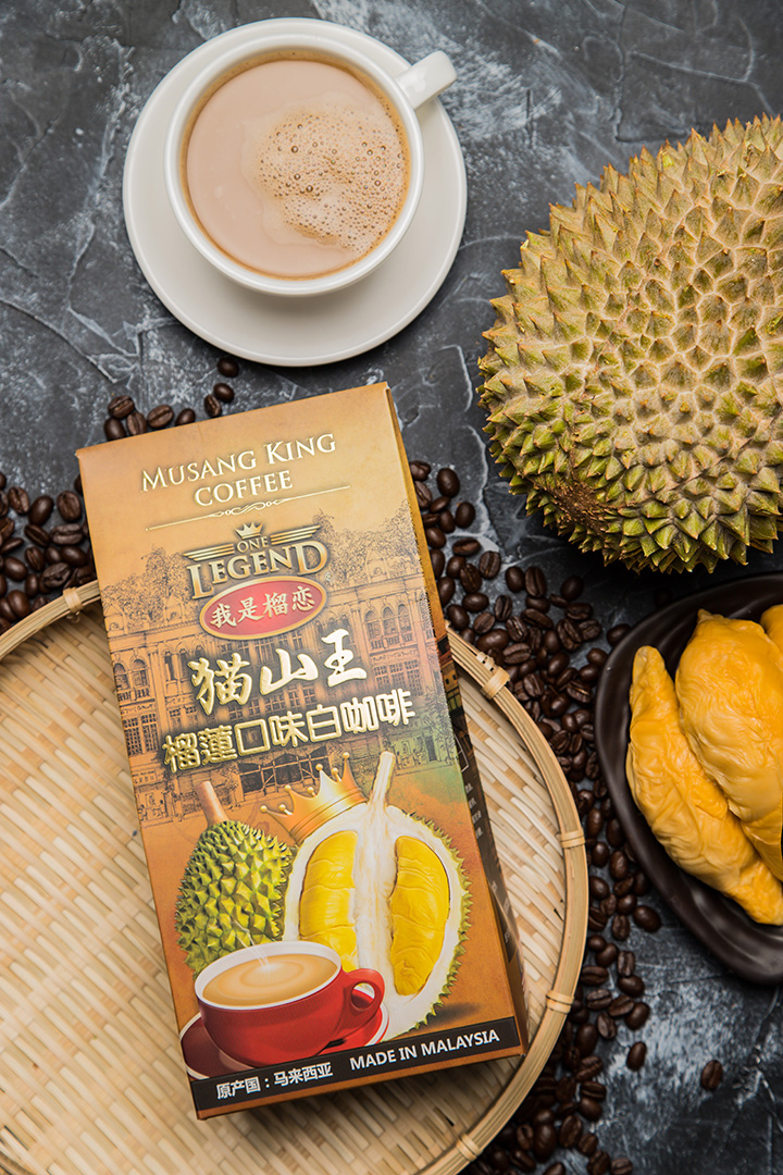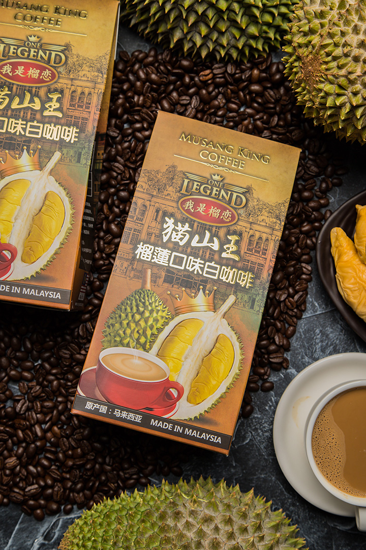 “Musang King” is the most popular durian in Malaysia. Musang King is full of fragrant, dense and sweet taste, which unforgettable after eating. The conditions for the growth of Musang King fruit trees are harsh and the production is susceptible to climate change, so the price is quite expensive. The unique slow roasting technique makes the white coffee sensationally pleasing, and it is surprisingly popular with the strong smell of Musang King.