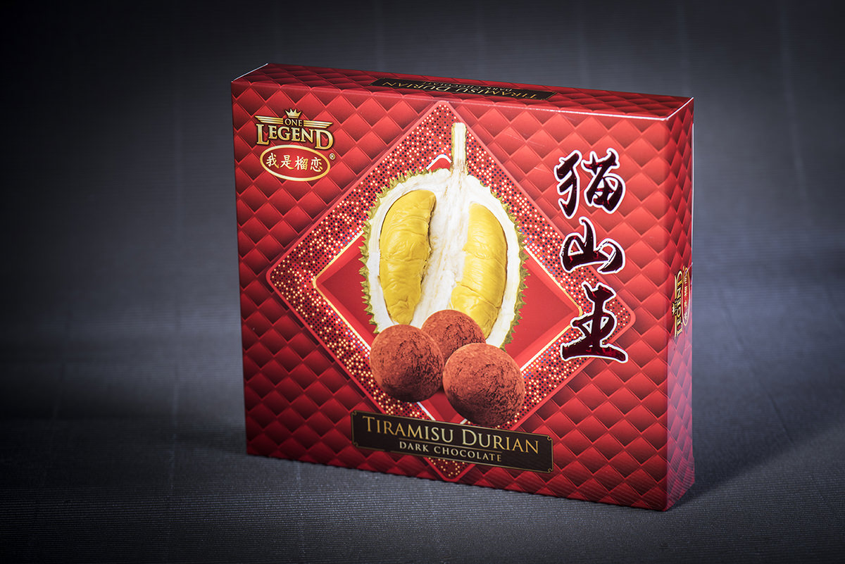 巧克力表层包裹着提拉米苏(Tiramisu),吃到嘴里香,滑,甜,咸,柔和中带有质感的变化,味道并不是一味的甜,因为有了可可粉,所以略微有一点苦涩,咬破巧克力的外壳,里面的榴莲夹心浓郁的味道破壳而出,微苦回甘,榴莲香浓扑鼻,味道非常好吃。